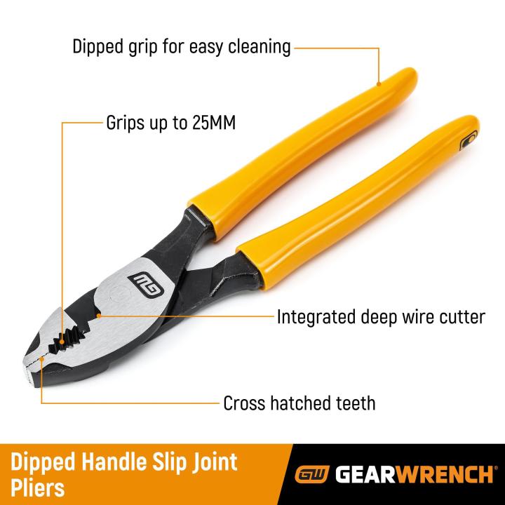 Frequently Asked QuestionsIs alloy steel construction suitable for heavy-duty tasks?The alloy steel material provides durability and strength, allowing the pliers to withstand demanding applications.How does the cross-hatched jaw design work?The cross-hatched jaw design grips and pulls materials more effectively than standard jaw designs. The crisscross pattern provides extra grip and bite, allowing the pliers to firmly grasp objects being pulled or twisted. This cross-hatched pattern also helps prevent slippage when cutting wire.Do these come with a warranty?GEARWRENCH offers a full lifetime warranty. If you have more questions, please reach out to our dedicated Customer Service team at 877-626-3433.