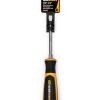 GEARWRENCH screwdrivers are ergonomically designed to fit your hand while on the job. The tri-lobe handle shape provides the best performance with the least amount of effort. The dual material of the handle is oil and solvent resistant. The tips have a black oxide, non-slip coating. The part numbers and sizes are laser etched on the blade.