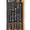 GEARWRENCH screwdrivers are ergonomically designed to fit your hand while on the job. The tri-lobe handle shape provides the best performance with the least amount of effort. The dual material of the handle is oil and solvent resistant. The tips have a black oxide, non-slip coating. The part numbers and sizes are laser etched on the blade.
