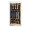 Frequently Asked QuestionsWhat is included in this set?Included are a Torx® T10, T15, T20, T25, T27, T30, and T40.What are the advantages of a Torx® screwdriver?The star-shaped design allows for higher torque transmission compared to traditional screw types, reducing the risk of stripping the screw head.Where are Torx® screwdrivers commonly used?These are widely used in the automotive industry, electronics and furniture assembly.