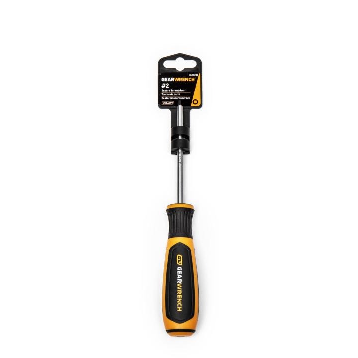 GEARWRENCH screwdrivers are ergonomically designed to fit your hand while on the job. The tri-lobe handle shape provides the best performance with the least amount of effort. The dual material of the handle is oil and solvent resistant. The tips have a black oxide, non-slip coating. The part numbers and sizes are laser etched on the blade.