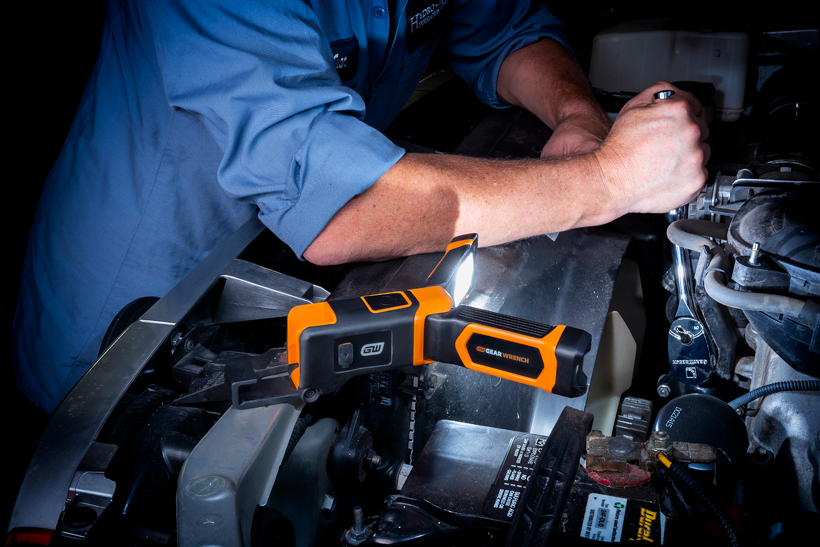 GEARWRENCH Flex Head Light being used to light up a fuse box