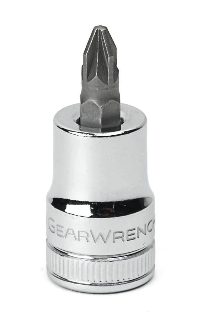 GEARWRENCH bit sockets have heat treated alloy steel base sockets for durability and long tool life. Our bits are manufactured from S2 steel for maximum strength. The screwdriver bit sockets are available in Phillips®, slotted, & Pozidriv® tips.