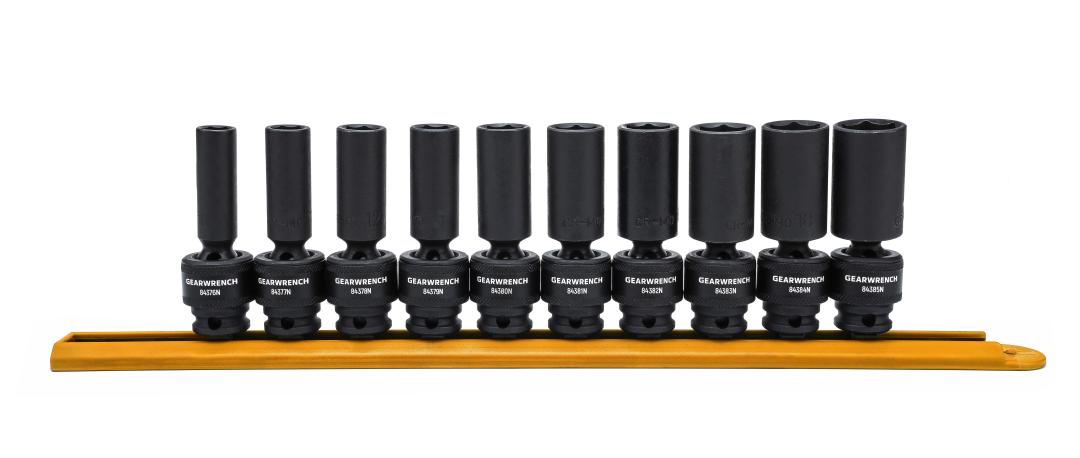 GEARWRENCH offers a wide range of impact products in open stock & sets that are designed to deliver the performance and strength that the professional users require. They are made from chrome molybdenum alloy steel for exceptional strength and durability. Our sockets have a manganese phosphate coating to resist corrosion. The sockets also feature highly visible laser etched markings and a secondary size hard stamping. The sockets feature off-corner loading to reduce fastener rounding. The GEARWRENCH impact product family will allow the professional user to FORGE AHEAD.