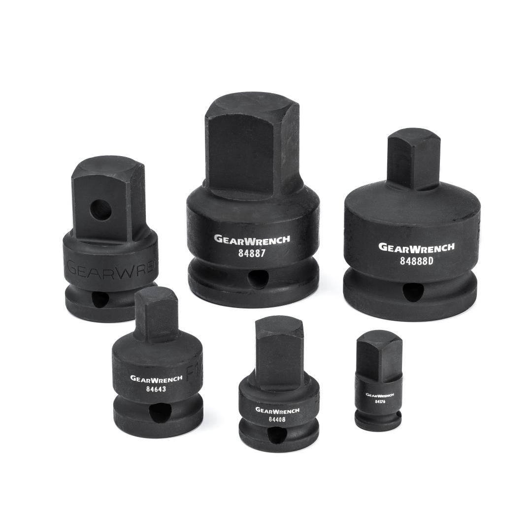 • Range of increase and decreasing impact adapters cover 1/4", 3/8", 1/2", 3/4" Female End Drive Sizes and 1/4", 3/8", 1/2", 3/4", 1", Male End Drive Sizes