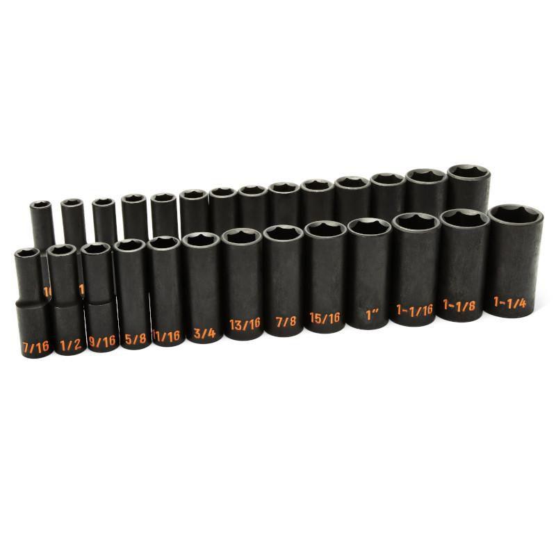 27 Piece 1/2" Drive 6 Point SAE Hi-Viz/Metric Hi-Viz Deep Impact Socket Set