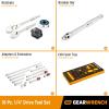 Frequently Asked QuestionsWhat's included in the set?The set includes a comprehensive assortment of 1/4 inch drive tools such as 90T ratchets, adapters, universal joints and extension bars. It provides a versatile selection of tools for various applications.How does the knurled grip enhance usability?The knurled grip provides a nonslip surface, enhancing usability by allowing for better control and torque application during use.Does this have a warranty?GEARWRENCH offers a full lifetime warranty. If you have more questions, please reach out to our dedicated Customer Service team at 877-626-3433.