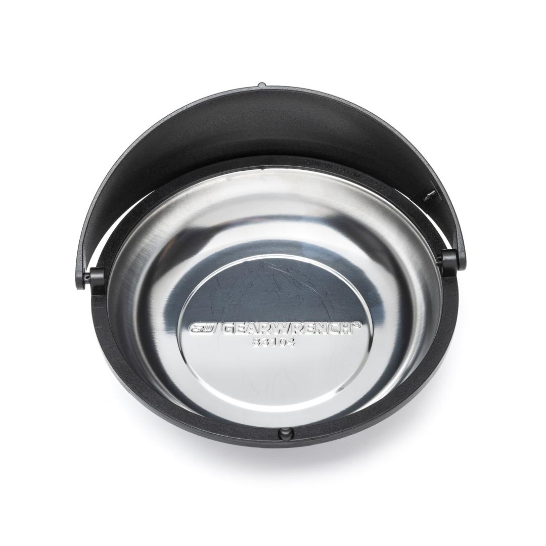 The magnetic parts trays from GEARWRENCH keep all of your small parts and pieces in one place while you work. The fully magnetized trays can be mounted vertically or horizontally to any ferrous metal surface, and the swiveling plastic rim keeps your non-magnetic items from falling out of the tray when hung vertically.