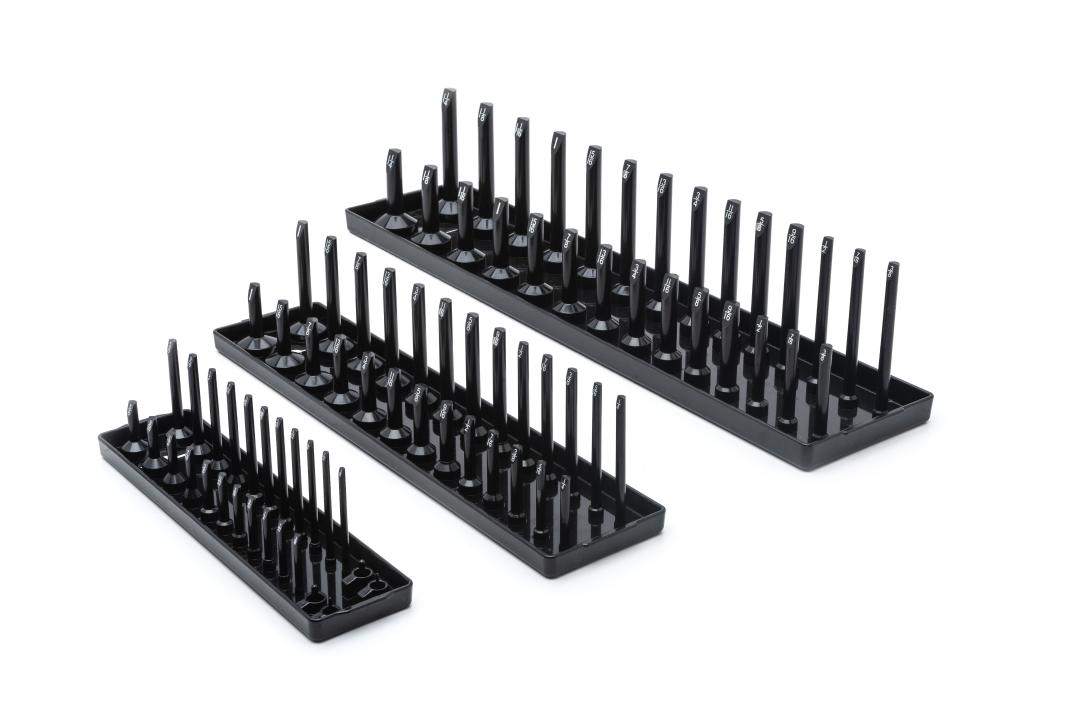 3 Piece 1/4", 3/8" & 1/2" Drive Black SAE Socket Storage Tray Set