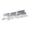 Frequently Asked QuestionsWhat tools are included in this set?The set includes 1/4 inch and 3/8 inch drive ratchets, extensions, standard and deep sockets in both SAE and metric sizes, and a storage case. It provides a comprehensive selection of commonly used mechanics' tools.How does the socket design prevent rounding?The socket design prevents rounding through its off-corner loading design which places the force on the flats of the fastener rather than the corners. This reduces the risk of damaging or rounding off the fastener.How does the chrome finish affect durability?The chrome finish resists corrosion, and that improves the durability.