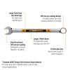 GEARWRENCH HI-VIZ combination wrenches are built for durability, speed, and performance. Featuring vivid color size markings up to 100% more visible than competitive products, GEARWRENCH HI-VIZ wrenches ensure you never grab the wrong size tool. Made from alloy steel with a full chrome polish to resist rust and corrosion, they have undergone extensive testing to ensure the HI-VIZ markings stay permanently visible after heavy use. The off-corner loading design on both ends provides a stronger grip and up to 25% more torque to fasteners. The longer beam offers improved reach and comfort, while the box end is offset 15° for better access. Available in 12-point long pattern lengths, GEARWRENCH HI-VIZ combination wrenches are an essential upgrade for any toolbox.