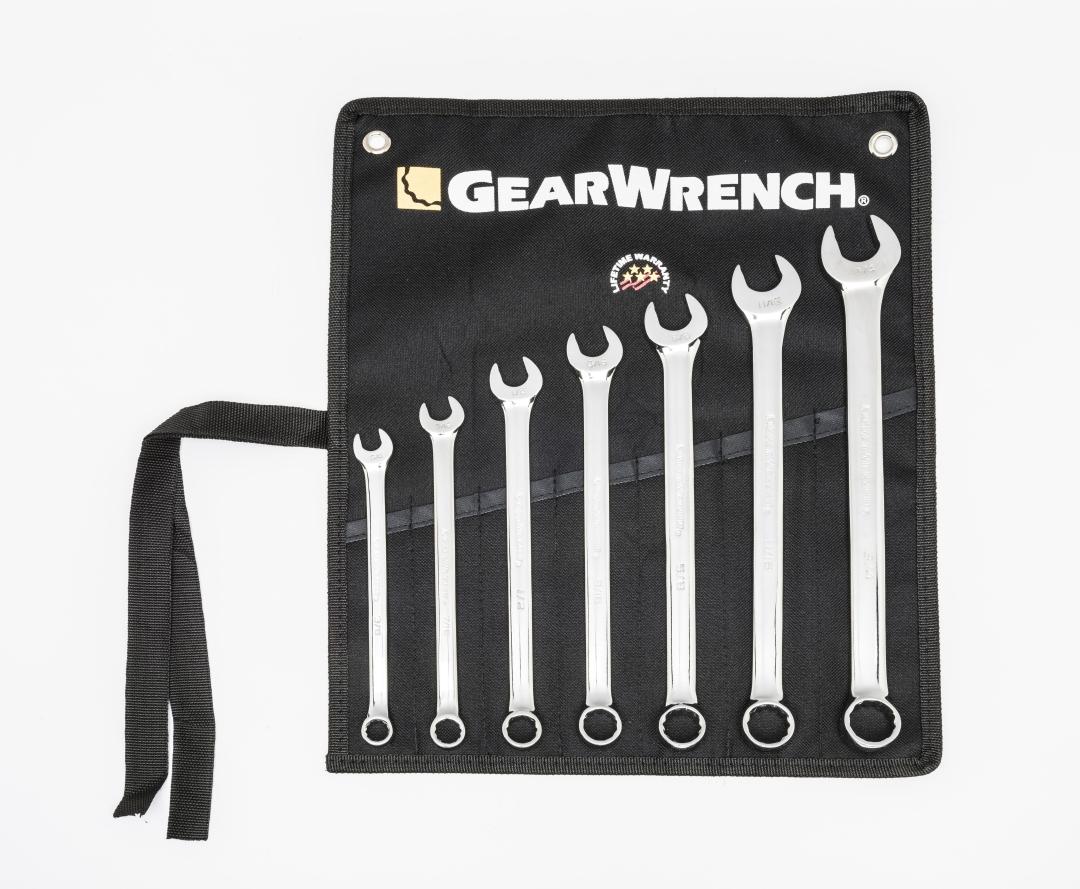 The GEARWRENCH combination wrenches are durable tools for most jobs. They are made from alloy steel with either a full polish or satin finish that resists rust & corrosion. The off-corner loading design on both ends provides a stronger grip on fasteners, reduces fastener rounding, and delivers up to 25% more torque to the fasteners. Sizes are stamped on the beam for quick, easy, & permanent identification. The box end is offset 15° for increased access to fasteners. Available in stubby & long pattern lengths and 6 & 12 point, the GEARWRENCH combination wrenches are a must have for every toolbox.