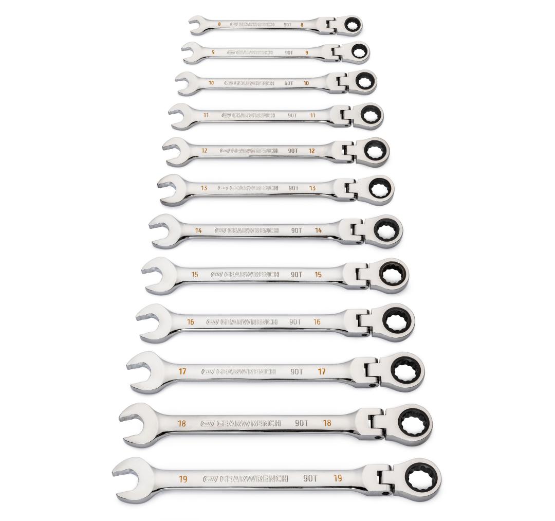 12 Piece 90-Tooth 12 Point Flex Head Ratcheting Combination Metric Wrench Set