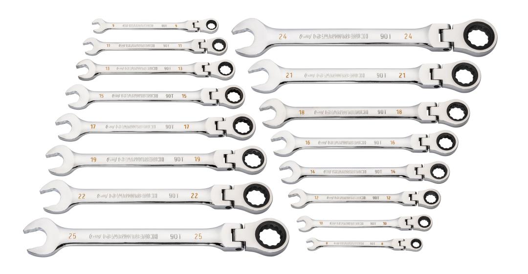 16 Piece 90-Tooth 12 Point Flex Head Ratcheting Combination Metric Wrench Set