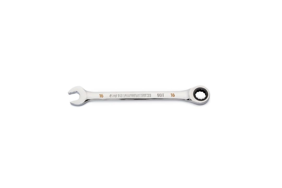 GEARWRENCH 90-tooth ratcheting wrench swing arc of just 4° turns fasteners in extremely tight spaces. Longer, wider beam delivers improved reach, leverage, and comfort. Large color-coded SAE/metric markings make size identification easy. All exceed ASME performance specs and come with the trusted GEARWRENCH Full Lifetime Warranty.