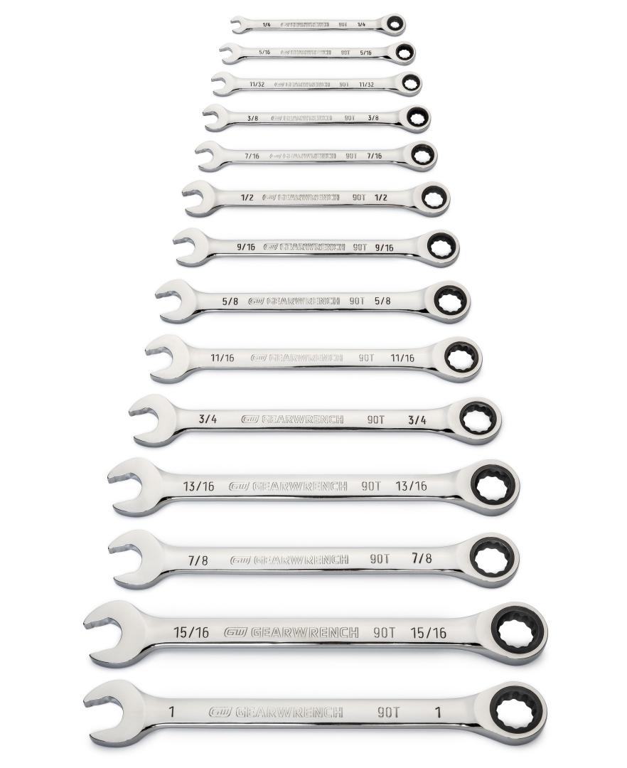 14 Piece 90-Tooth 12 Point SAE Combination Ratcheting Wrench Set