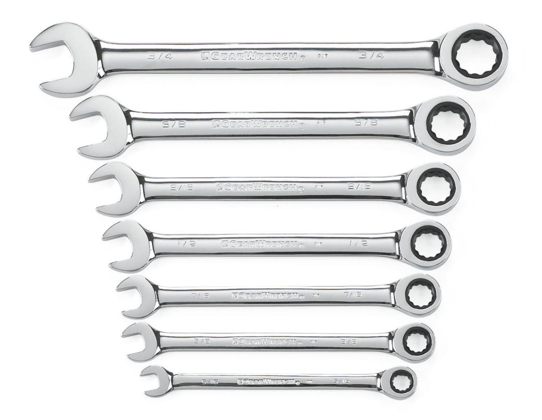 GEARWRENCH Original ratcheting wrenches combine the speed of a ratchet with the access and control of a wrench. They offer the ease of 5 degrees of movement to turn fasteners, versus 30 degrees on standard combination wrenches. The small ratcheting box end head design enables access to tight spots where a ratchet won't fit. The open end allows for easier access on tough to reach spots, making jobs go faster and easier. This set is a great addition to any mechanic tools collection.