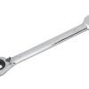 The reversible ratcheting combination wrenches from GEARWRENCH are a staple for every tool box. The flush-mounted reversing lever allows the user to switch motion left to right without needing to remove the wrench from the fastener increasing productivity. The 15° offset on the ratcheting box end allows for greater knuckle clearance and safer access to the fasteners. The ratcheting box end is designed to need as little as 5° to move fasteners versus 30° for standard wrenches and features off-corner loading for a better grip on the fastener and reduces fastener rounding. The wrenches are made from strong alloy steel with a bright, full polish chrome finish.