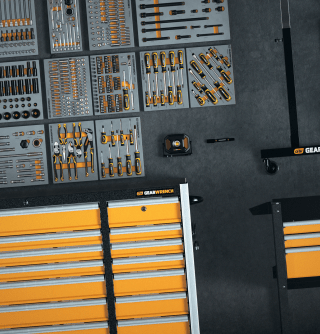GEARWRENCH modular sets feature chemical-resistant foam trays with high-visibility markings and custom-cut slots for fast identification and efficient storage. Ideal for creating a personalized and organized workspace.