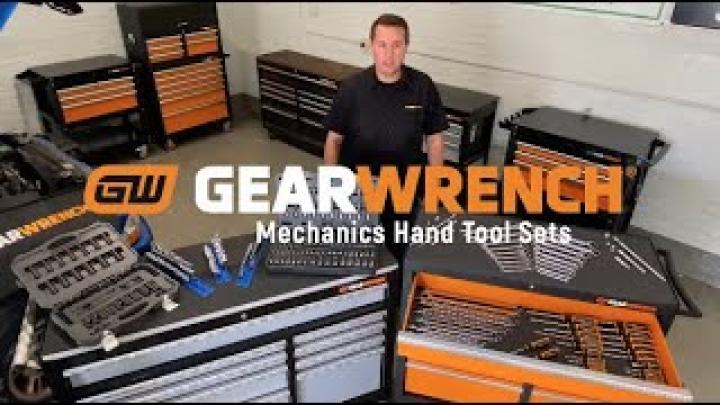 i'm Chris Coll, product manager with GEARWRENCH tools here to introduce you today to our new GEARWRENCH mechanics hand tool sets these GEARWRENCH toolsets provide the professional with a full range of tools needed to complete any job each set contains the innovation that you have come to know and expect from GEARWRENCH that provide you with speed strength and access to make the job easier for you each set contains the full range of sizes within its contents with no missing in between sizes and the sockets wrenches and screwdrivers we've done all the work for you in putting these sets together and passed on the savings as well these GEARWRENCH mechanics hand toolsets provide a significant value when compared to purchasing all the contents individually select sets include tool storage items easy to use in any pros toolbox or bag socket rails for chrome socket sets and blow mold cases for some of our other sets the new GEARWRENCH mechanics hand tools sets are available in chrome and impact sockets extensions bit sockets screwdrivers and ratcheting wrenches to learn more visit gearwrench.com