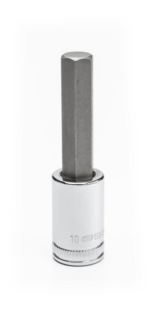 Living up to the reputation of the brand, GEARWRENCH chrome bit sockets deliver unprecedented speed, strength, and access to almost any job. Large, hard-stamped markings allow for easy identification. Available in standard, mid, and long bit lengths, the chrome hex bit sockets include the most commonly used sizes. The bits are manufactured from S2 steel to the highest tolerances to guarantee a precise fit. GEARWRENCH sockets will get the job done.