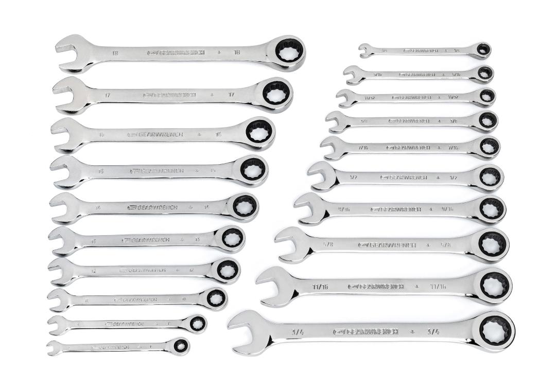 GEARWRENCH Original ratcheting wrenches combine the speed of a ratchet with the access and control of a wrench. They offer the ease of 5 degrees of movement to turn fasteners, versus 30 degrees on standard combination wrenches. The small ratcheting box end head design enables access to tight spots where a ratchet won't fit. The open end allows for easier access on tough to reach spots, making jobs go faster and easier. This set is a great addition to any mechanic tools collection.